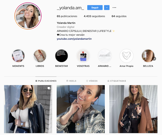 Con contenido en español tenemos a Yolanda Martín (su IG es _yolanda.am_), le pone un cariño y una dedicación a lo que publica que me parece maravillosa :) , también tiene un canal de youtube donde publica sobre estilo de vida y armario cápsula.